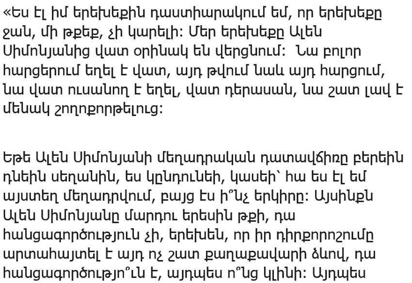 According to Ruben Melikyan, Mikael’s parents are decent people, he himself is an excellent student.