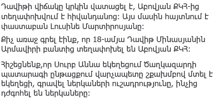 We wrote a while ago that 18-year-old Davit Minasyan was transferred from Armavir prison to Abovyan Penitentiary.